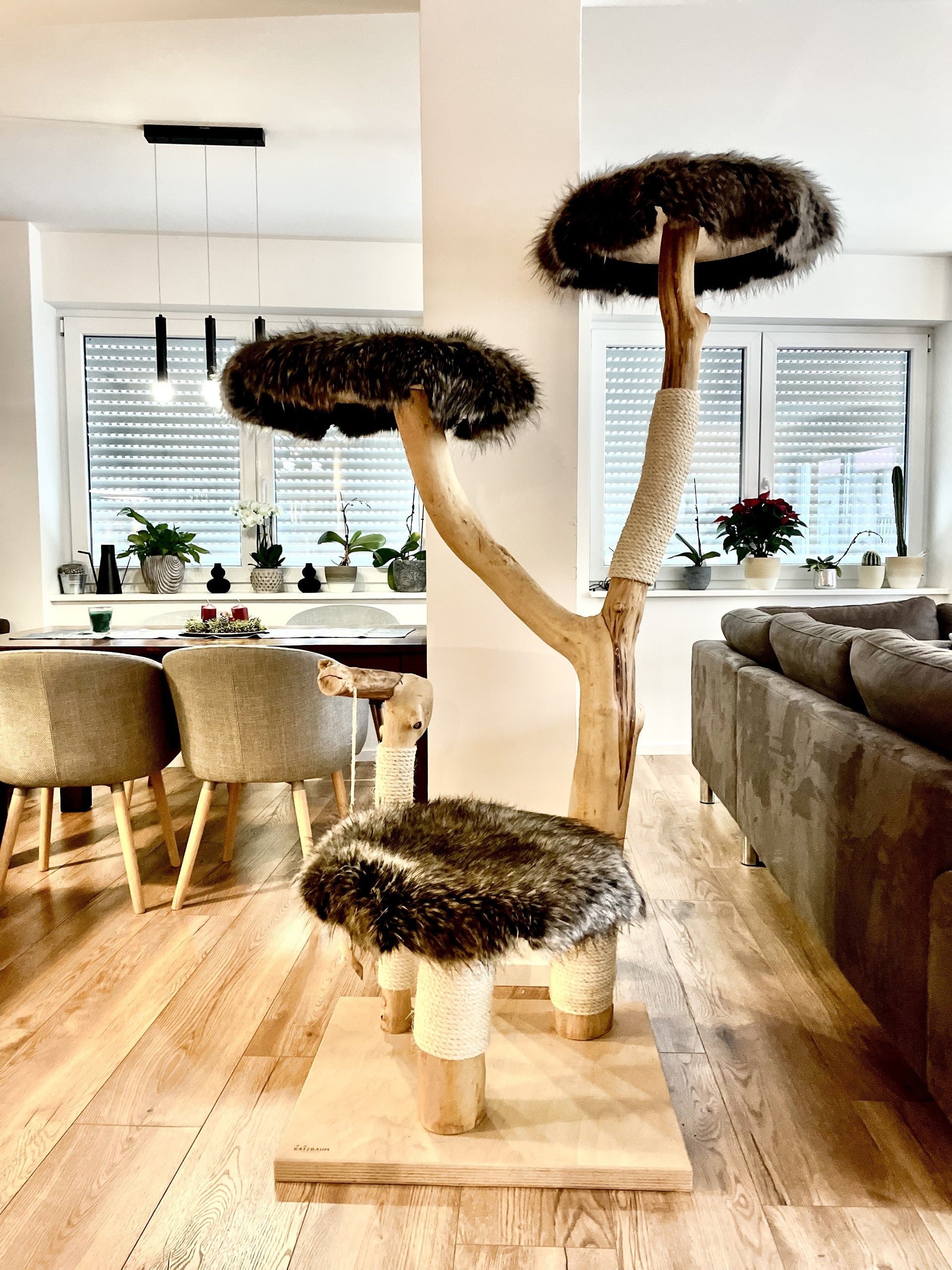 Ist dein Wunschbaum nicht dabei? Dann schreibe uns gerne an und erzähle uns von deinen Vorstellungen. Individuelle Maße, Schaukeln, Hängematten, zusätzliches Sisal oder Liegeflächen, usw. – vieles ist möglich.